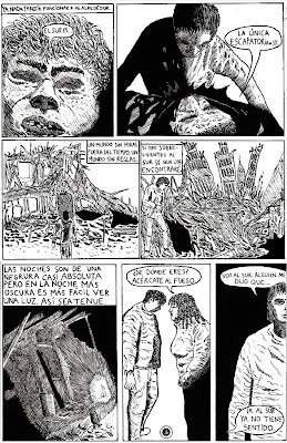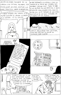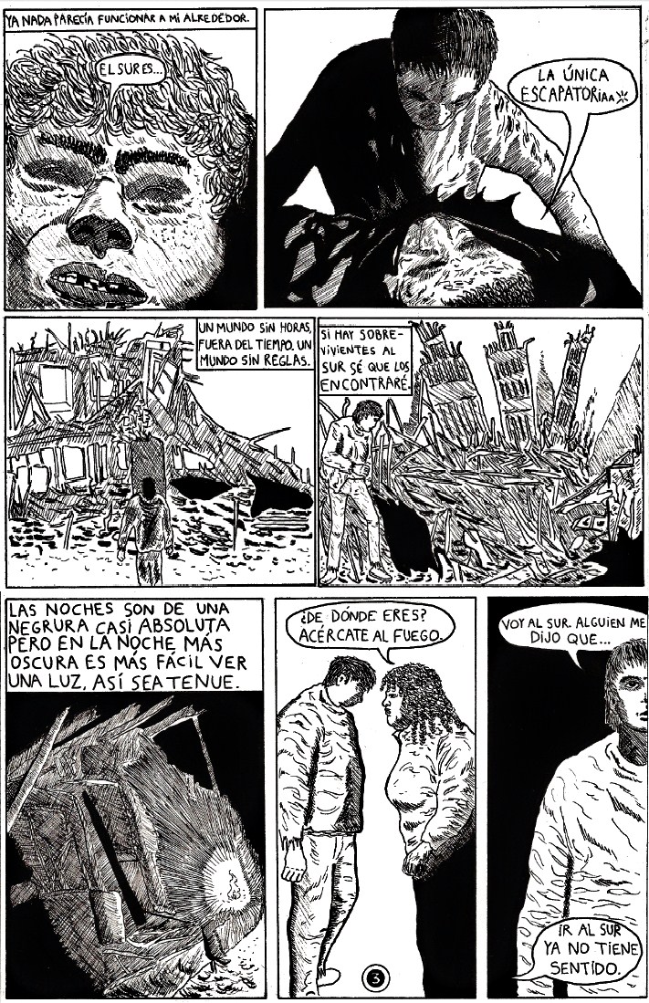 2010: página 3 del cómic que quedó finalista en el concurso de historieta PUCP 2010. El jurado debe haberse exasperado con tantas líneas y rayitas hechas con estilógrafo así es que el resultado final fue una simple mención honrosa. Para la próxima usaré una plumilla y tinta china.