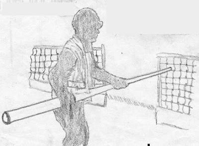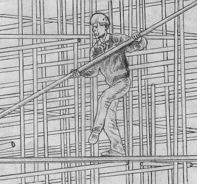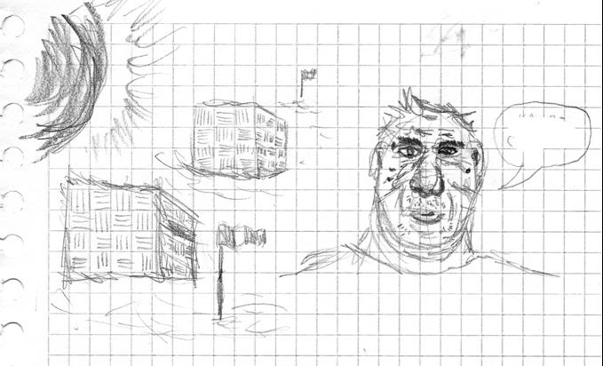 Este boceto es bastante simplón. Me sirvió para descubrir lo difícil que era dibujar a un tipo aporreando la cabeza de otro tipo.