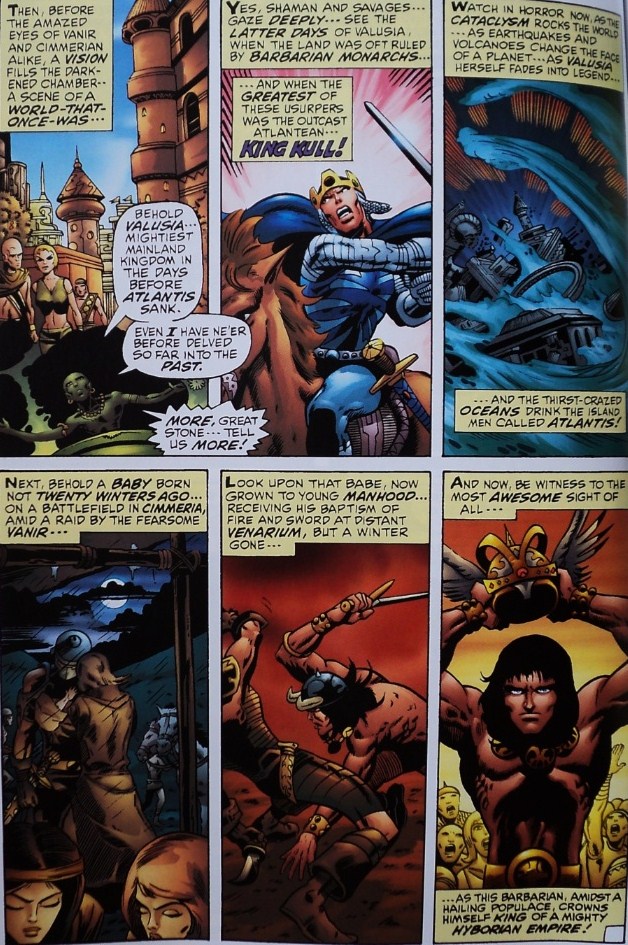 Robert E. Howard creó un continente, no sólo con palabras sino con mapas minuciosamente diseñados. Roy Thomas se apoya en esta vasta geografía para guiar los pasos de Conan. Como hemos visto antes, el bárbaro están en constante movimiento, viajando de una región a otra, desde las tierras nevadas de Asgard y Vanaheim, en los primeros dos números, hasta Hiperbórea y Britunia en el tercero, y luego Zamora en los números 4 y 5.