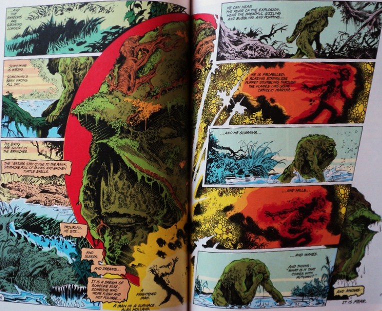 Therefore, only a creative team as talented as the one formed by Stephen R. Bissette and John Totleben could do any justice to Moore’s script. Their technique is akin to Francisco de Goya’s style and other Romanticism artists as well. Whenever the characters run for their lives, we have a ragged surface, without smooth finishes, and at the same time we also have exquisitely painted details.