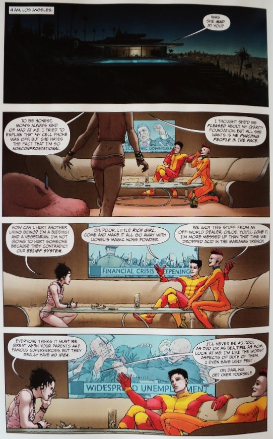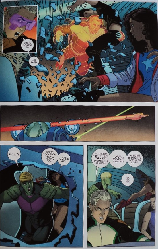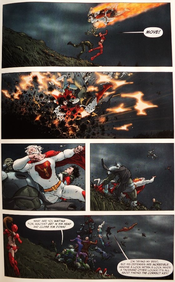 Mientras tanto, Witch Doctor lucha contra su némesis, quien planea derramar una potente poción mágica en las reservas de agua de la ciudad. Después de ser golpeado, el doctor se da cuenta que no tiene tiempo para creer un hechizo específico que neutralice la poción, pero puede hacer algo más: mear (literalmente). Como dije, sabía que sería sorprendido en las páginas finales de la miniserie, pero no creí que me divertiría tanto con las técnicas urinarias del protagonista.