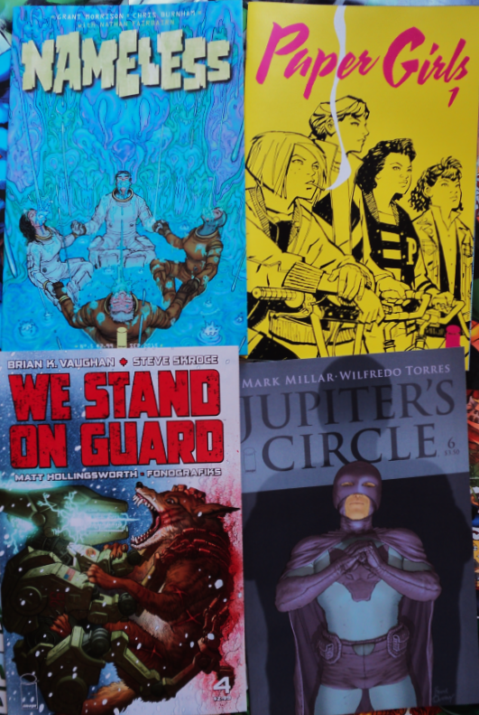 Issues like this explain why my admiration for John Cassaday only increases in time. In addition to his beautiful illustration of the jungle, Cassaday also provides the reader with the necessary details to further appreciate what’s going on in the opening sequence, id est, the searing sun and the sweaty Elijah Snow that is desperately trying to find the city. The splash page is also an amazing example of composition, there are two diagonal invisible lines the divide this impressive image in four: in the left and right sides there is nothing but the lush forest; in the top of the page, we have the massive gold structure of Opak-Re, with its stunning geometrical figures; and at the bottom of the page, we have Snow’s tiny boat. The contrast between the immensity of the jungle and the colossal dimensions of the city are enhanced by the presence of the boat. The artist depicts Lord Blackstock’s majestic demeanor in a subtle and yet undeniable manner. Cassaday’s cover is also a wonderful and striking image, reminiscent of the pulp novels of yesteryear.