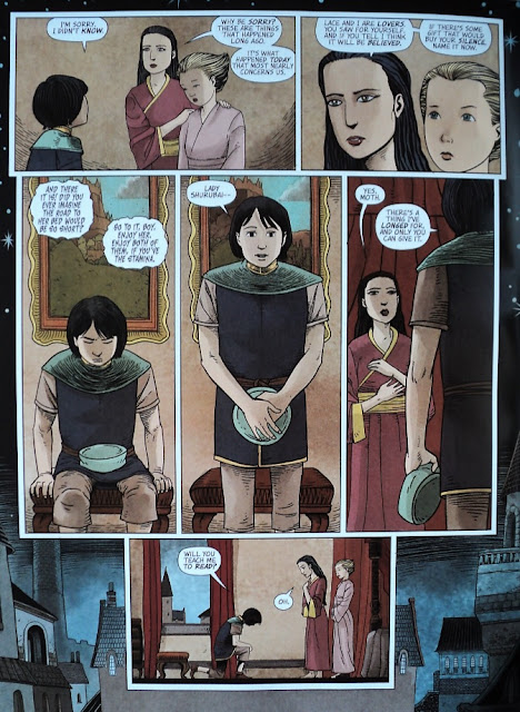 Is slavery a mental state or a legal status? If we believe it’s the former then we’ll also come to the conclusion that slavery is, somehow, intrinsic to the nature of certain individuals, if we believe it’s the latter, then we’ll come to the conclusion that societies must change and kingdoms must fall, before freedom can be achieved. As we saw in the first 3 issues of The Highest House, Moth is a child that is sold as a slave by his mother.