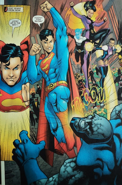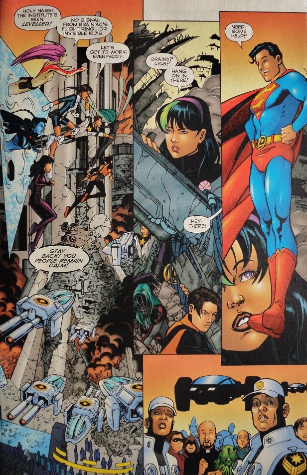 Chuck Taine y Gear roban un proyecto de nanotecnología experimental del laboratorio de Brainiac 5, pensando que pueden programarlo para hacer toda la limpieza, pero estos nanocomponentes terminan devorando toda la materia orgánica. En lugar de alertar a los otros legionarios, el dúo simplemente engaña a Superboy para que los ayude. Dan Abnett y Andy Lanning saben muy bien cómo humanizar a los superhéroes, y también tienen un enfoque irreverente que ciertamente se ajusta al tono juvenil de este cómic. No pude dejar de reírme con todos los chistes contados a expensas de Superboy, por ejemplo cuando Chuck Taine y Gear se burlan de él por su falta de higiene y su dormitorio desordenado. Superboy, al igual que todos los adolescentes, es desordenado y en ocasiones un poco cochino, pero ese es un aspecto que uno no ve mientras que él está por ahí salvando el mundo.