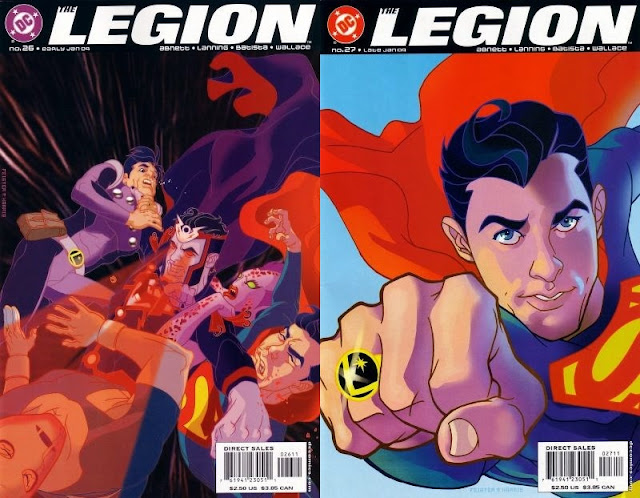 “Notorious” (published in The Legion # 32 and 33, in June and July 2004) was the last arc written by Abnett and Lanning. With only 2 issues at their disposal, it was impossible for them to wrap up all the loose ends and dangling plot threads, but still they did the best they could, and the result was amazing. After 5 uninterrupted years writing Legion of Super-Heroes, Legion Lost, Legion Worlds and The Legion, the talented British writers said goodbye to the young heroes of the future with a final chapter that is touching as well as evocative.