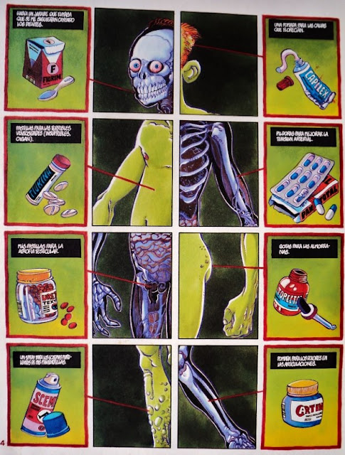 Para el protagonista, no hay nada más terrorífico que presentarse ante su padre (un hombre que sólo piensa en términos numéricos) luego de haber obtenido una baja nota en la prueba de matemáticas. Santi Pérez captura a la perfección la ansiedad y la inseguridad que todos hemos sentido alguna vez durante nuestra etapa escolar. Las desgarradoras escenas de violencia doméstica son el necesario contrapunte para la venganza que ya está próxima. Sin duda, una de las escenas más escalofriantes es la matanza realizada por el co-protagonista, labor que empieza con unas simples ranas y que termina con el cuerpo de la chica más bonita de la escuela. En media docena de viñetas, Santi Pérez logra imbuir algo de inocencia infantil a los macabros crímenes cometidos por sus personajes. Un inusitado logro que, sin duda, merece toda mi admiración.