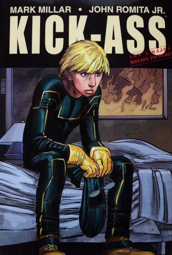 La ironía es un ingrediente fundamental en el "Kick-Ass" de Millar, y mientras Dave Lizewski está remendando su uniforme, su amigo Todd está teniendo sexo con una ex profesora de secundaria; en este caso, una mujer que inspiró muchas de las sesiones masturbatorias –y maratónicas– de Dave (tal como se ve en las páginas del cómic así como en las secuencias iniciales de la primera película). Afirmar que Kick-Ass está atrapado en una vida patética sería decir poco. Él no solamente está atrapado sino que también está obligado a escuchar los constantes gritos de éxtasis que vienen de la habitación contigua. No puedo pensar en algo peor que un caso de sequía sexual agravado por la proximidad de actividad sexual a todo volumen.