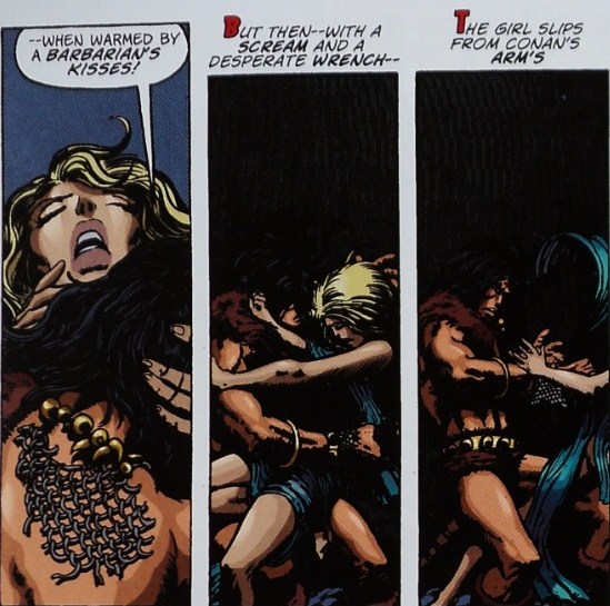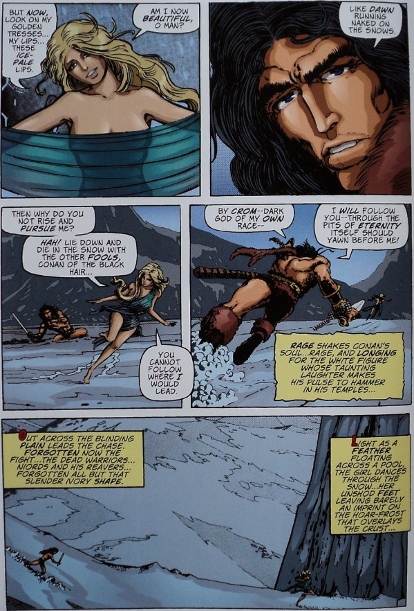 The first chapter of “Tragaldabas” was published in 1990, in the pages of Creepy # 1. Corominas unleashed all his creativity, not only as an artist but also as a writer. The series moved in two directions, on one hand, we have the main plot, in which a religious fanatic kidnaps Saray, a smart journalist responsible for discrediting many sects and pseudo-messiahs; captured by this sinister and fat man, Saray is tortured while forced to listen to the peculiar parables that he tells her. The parables are a fundamental aspect of “Tragaldabas”; obviously, these are not fables or spiritual tales, but rather twisted, violent and often terrifying stories. Thanks to this dual structure, Corominas satisfies his readers by offering a complete story in each Creepy issue (one of the parables told by the captor), while gradually developing the main plot (id est, the intellectual and physical confrontation between the victim and her abductor).