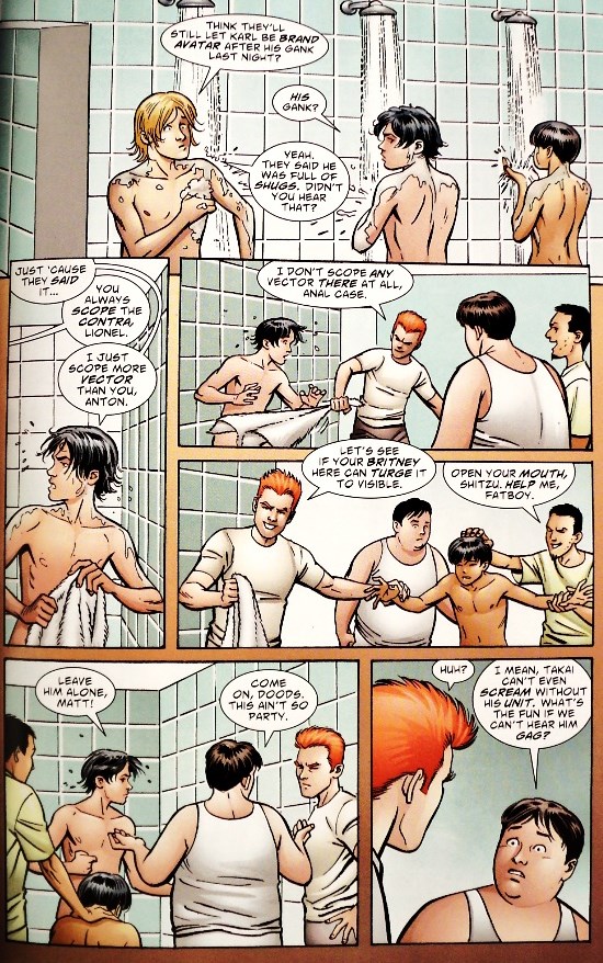 “Sólo porque tienes un pene no significa que eres invencible”. No podrán encontrar palabras más ciertas en las páginas de “Sin hombres” (publicado en "Y: The Last Man" # 1 a 5, desde setiembre del 2002 hasta enero del 2003). Aunque, si nos tomamos una breve pausa, nos daremos cuenta de que, en realidad, para muchos hombres la posesión del falo es siempre una forma de legitimar su autoridad, ejercer control o dominio sobre otros. Claro que no soy el tipo de hombre que intenta imponer su visión o darle de puñetazos a alguien, pero entiendo demasiado bien los rituales de macho.
