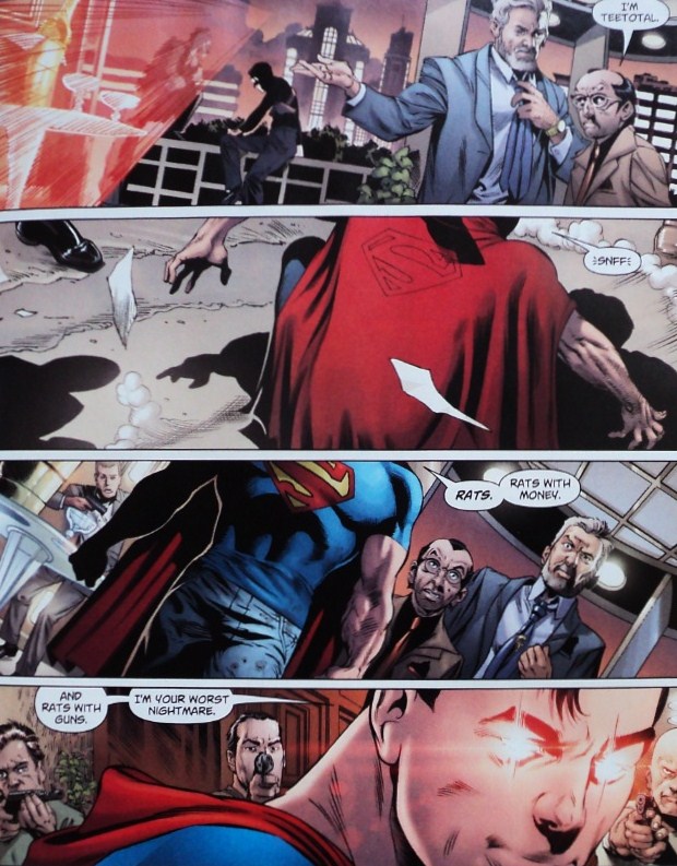 But Swamp Thing has strayed far from the bogs of Louisiana. Gotham isn’t his turf. Gotham is Batman’s city. And the inevitable confrontation between the Dark Knight and the creature of the swamps will only be the preamble of Lex Luthor’s sinister intervention.