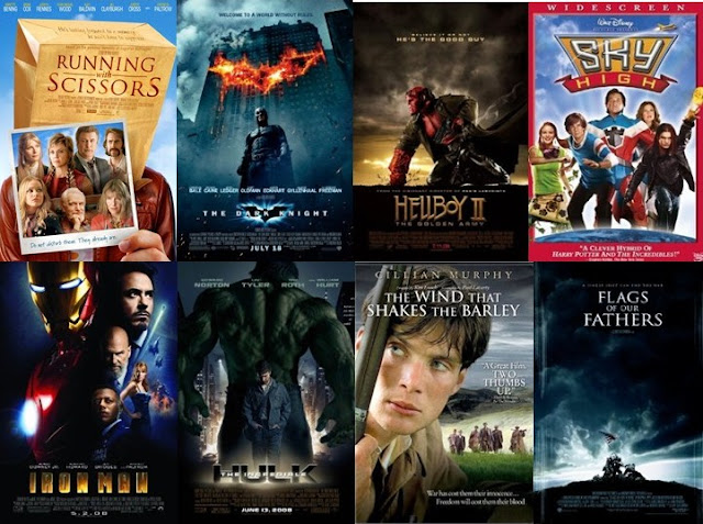 He sido fan de Christopher Nolan desde Memento, y considero que The Dark Knight (2008) es probablemente la mejor producción basada en un personaje establecido (como Batman). Hellboy 2: the Golden Army (2008) de Guillermo del Toro es mucho mejor que la primera, cargada de fantasía y momentos épicos Hellboy 2 lo tiene todo para impresionar al espectador. Sky High (2005) es en realidad una película para "todas las edades", es decir, no es algo a lo que usualmente prestaría atención, pero como el joven actor Michael Angarano había actuado en notables cintas independientes (Dear Wendy, Snow Angels, Bondage, etc.) decidí verla de todos modos, y realmente la disfruté, fue encantadora y divertida. Iron Man (2008) fue toda una sopresa, fiel a la personalidad de Tony Stark, Robert Downey Jr. elevó el nivel de las producciones de Marvel. The Incredible Hulk (2008) fue una buena secuela (mi escena favorita es la de Stan Lee, oro puro).