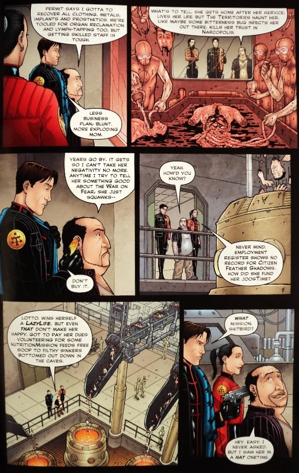 Realmente es fascinante observar el nivel de complejidad en el guión de John Ney Rieber. Desde ambigüedad política a hechos históricos, desde dilemas filosóficos a heroísmo tradicional, y más, las ideas presentadas en "Captain America" de Marvel Knights son maduras e inteligentes, y demandan ser leídas por un público igualmente maduro e inteligente.
