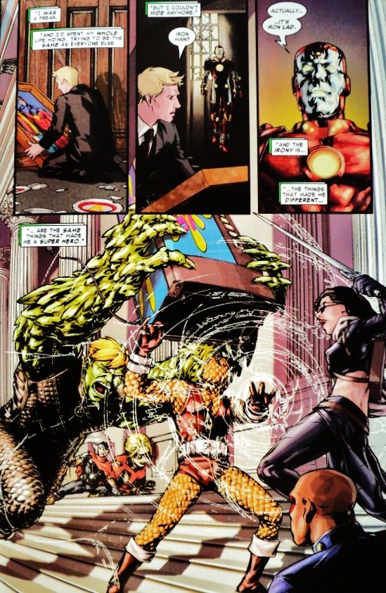 Described in the solicitations as an out of continuity “super-natural horror story”, this first series in DC’s newly minted Black Label line was supposed to surprise and delight all readers. And it sure did, although not in the way DC intended. The Black Label line was supposed to be “a mature readers imprint using DC Comics’ most famous characters”, as Rich Johnston explains. Therefore writer Brian Azzarello and artist Lee Bermejo created an extraordinary Batman story that, of course, has a much more mature approach than the monthly title. However, seems like the audience was not mature enough to understand their artistic proposal. After almost 80 years of graphic puritanism, in the pages of Batman: Damned # 1 there are a few scenes in which Bruce Wayne is naked, and sometimes it’s possibly to see a partial silhouette of what many have called “the glorious batpenis”.