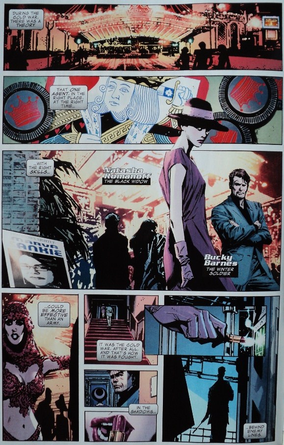 Winter Soldier es un óptimo homenaje a los cómics del pasado, con un estupendo enfoque artístico y un guión muy sólido. Alguien podría preguntar, sin embargo, ¿qué relevancia tienen los espías rusos en el siglo XXI? Bueno, como escribió Slavoj Žižek hace poco "ya no hay guerras en el viejo sentido de un conflicto entre estados soberanos en donde se aplican ciertas reglas". Esto, por supuesto, es especialmente válido en el transcurso del primer número de Winter Soldier, en el que James “Bucky” Barnes recuerda que durante la Guerra Fría, un agente capaz, en el lugar y en el momento adecuado, podía ser más más efectivo que un ejército. Ivan Kragoff (también conocido como el villano Red Ghost) piensa exactamente lo mismo, que no deja de ser bastante lógico, y es que en el mundo de hoy un terrorista, si tiene la oportunidad, puede causar más daño que todo un ejército.
